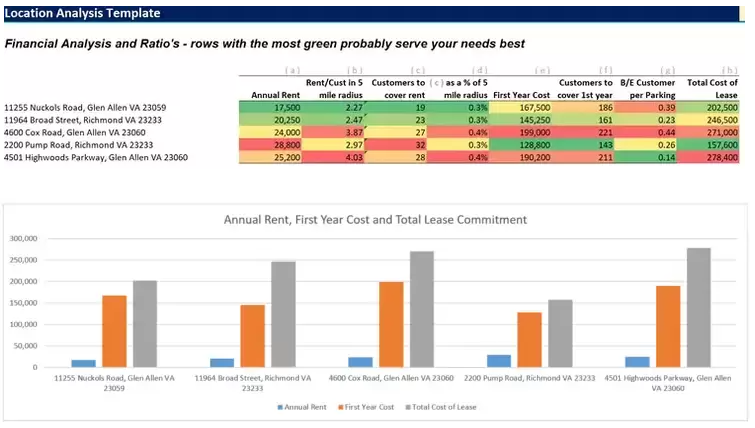 Picking the best location can be a complicated endeavor. You want to be sure you are convenient to customers, have the right amount of space, aren’t paying too much, understand build out for your facility and more. It’s a lot to stay on top of as you are trying to start a business. Make it easier with our location analysis tool. With a small amount of data to collect on each property, we give you 8 comparative financial metrics and 11 descriptive comparisons on each property. We also show you have to find out the number of your target customers in a 5 mile radius from each location.