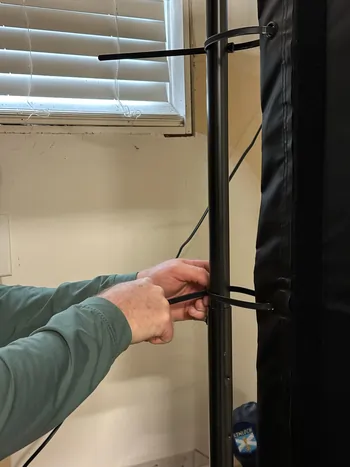 I began by laying out where I wanted everything and started to build the frame base, then the uprights, then the crossbars. While not a super quick 1 person job, it was very straight forward and difficult to do incorrectly. The pieces come together very nicely. It probably took me a little over an hour to put together the frame and wrap the enclosure fabric around it. I did take an extra step to wrap the front frame with rubber pipe insulation of a bit of extra safety.