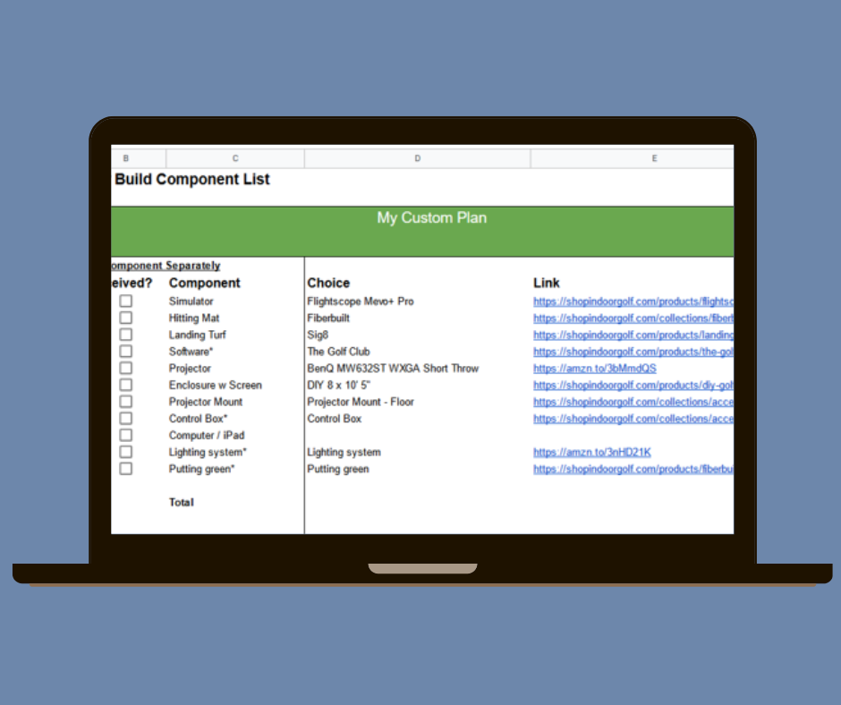 We built a free planning spreadsheet based on data from our survey of 500+ golf simulator owners. It helps you: